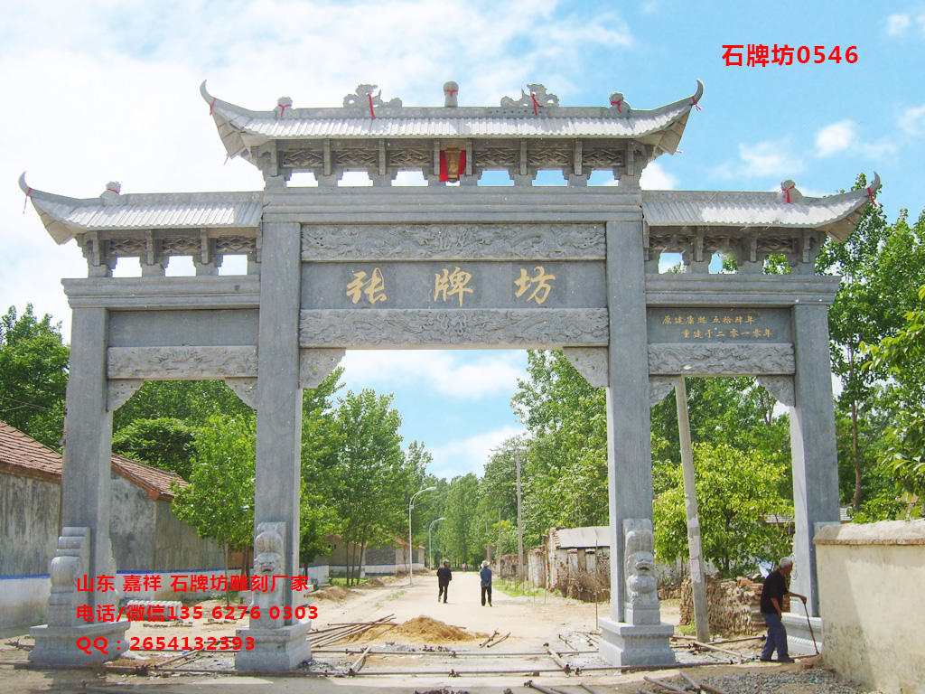 村牌是建造在村莊入口的標(biāo)志,也稱為村莊牌坊、農(nóng)村牌坊等,是一種常見的石牌坊建筑。石牌坊制作廠家嘉祥長城石雕廠,提供多款經(jīng)典的特色村牌圖片。從這些特色村牌圖片上來看,一門三樓石牌坊制作樣式,以及三門石牌坊雕刻最為常見。
