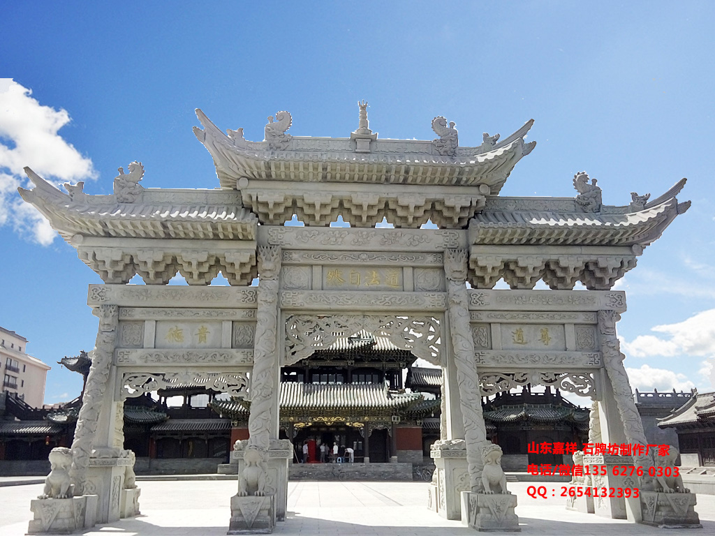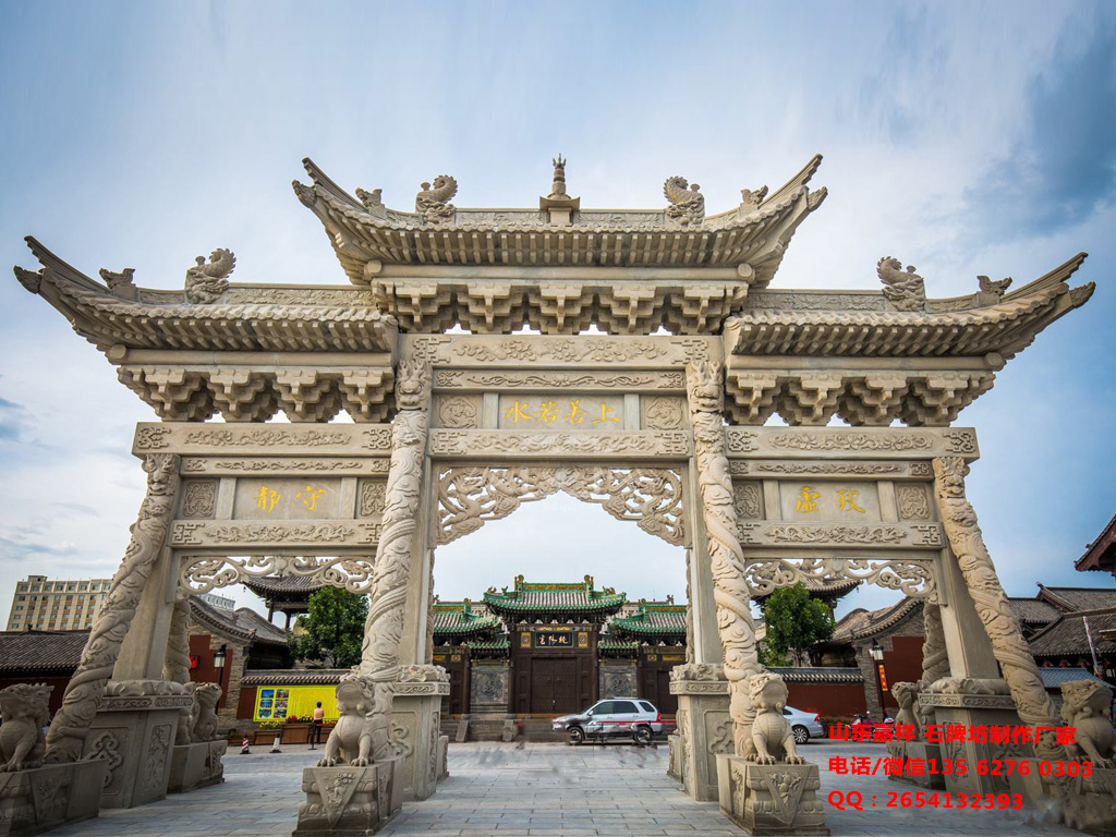 下面是專(zhuān)業(yè)石牌坊制作廠家長(zhǎng)城石雕廠,安裝在其他地區(qū)的石牌坊。